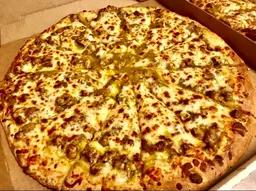 Pizza sauce, mozzarella, Mexican chorizo, jalapeno, red onions over our hand-tossed fresh dough